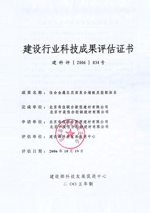 建設(shè)行業(yè)科技成果評(píng)估證書