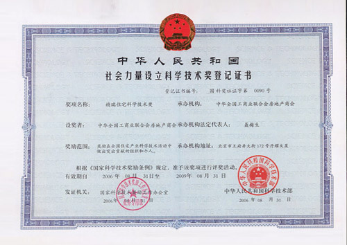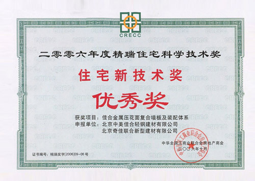 • 2006年榮獲中國(guó)第三屆“精瑞住宅新技術(shù)優(yōu)秀獎(jiǎng)”