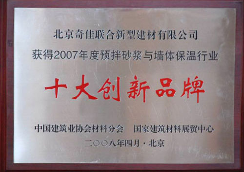 • 2007年被列入中國(guó)墻體保溫行業(yè)“十大創(chuàng)新品牌”
